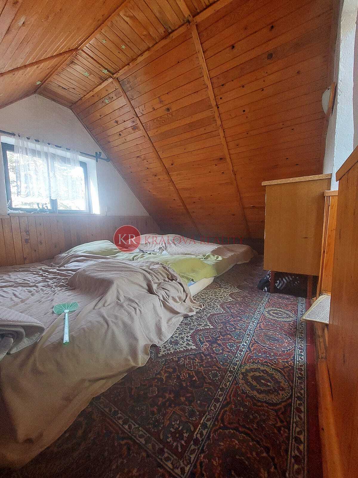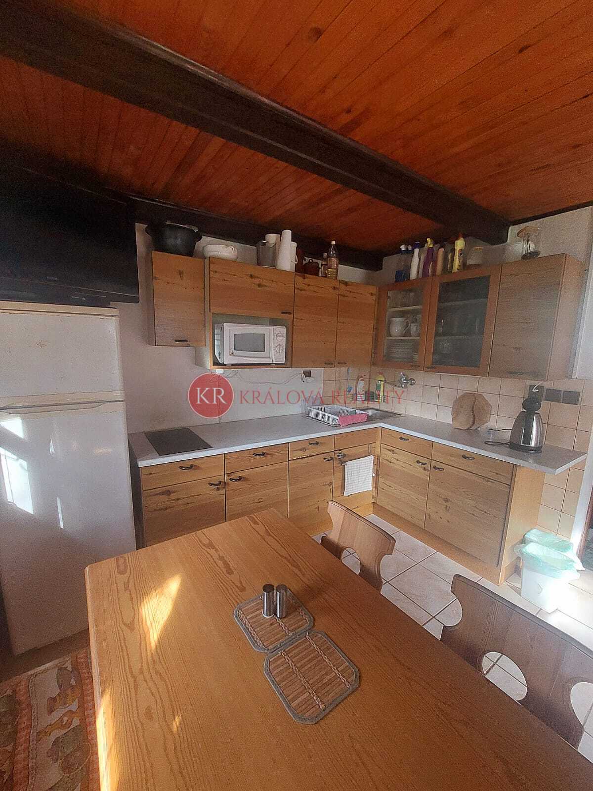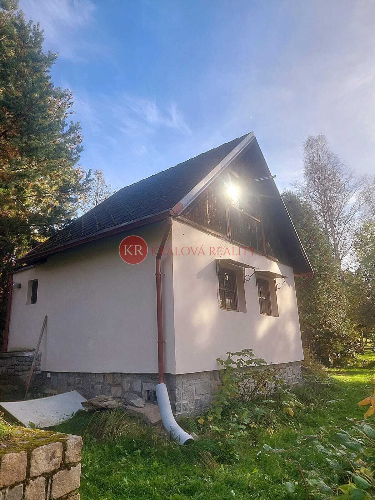 Prodej zděné chaty v Zátoni, obec Větřní, okres Český Krumlov. Chata má zastavěnou plochu 26 m2, celková užitná plocha je 52 m2. V prvním patře je balkon.